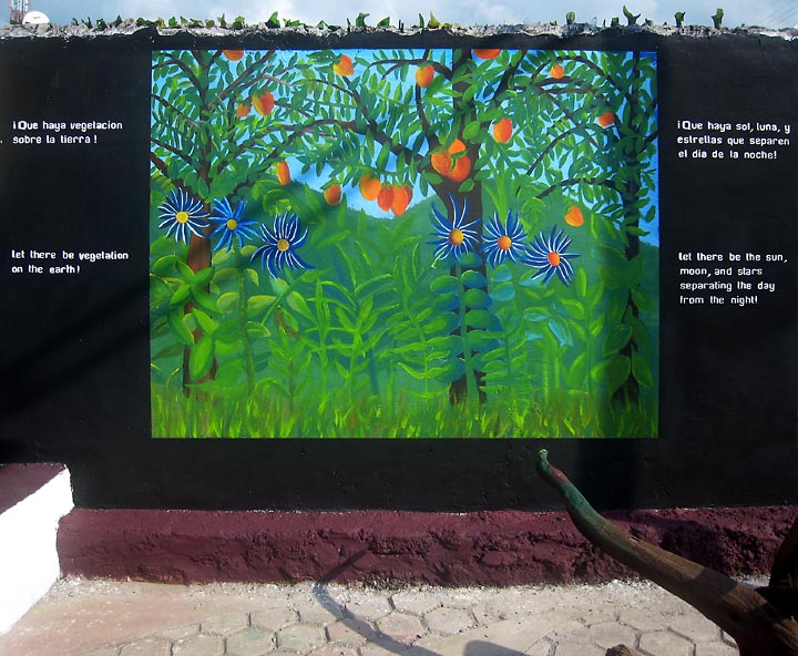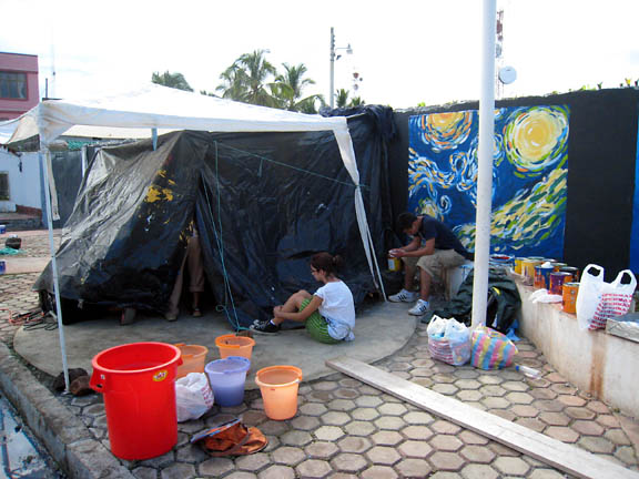 Beyond Words Ministry, a Christian outreach program of Alliance Academy from Quito, Ecuador, directed by Deborah Bond was privileged to spend spring break of 2008 doing the unbelievable... painting the creation story on the very islands that gave birth to the theory of evolution by Charles Darwin. It was an incredible and blessed experience, and the reception was surprising as well. Most people were grateful to have the creation story portrayed in such a beautiful manner. All commented on its beauty, and we passed out over 2,000 tracts especially created for this trip.